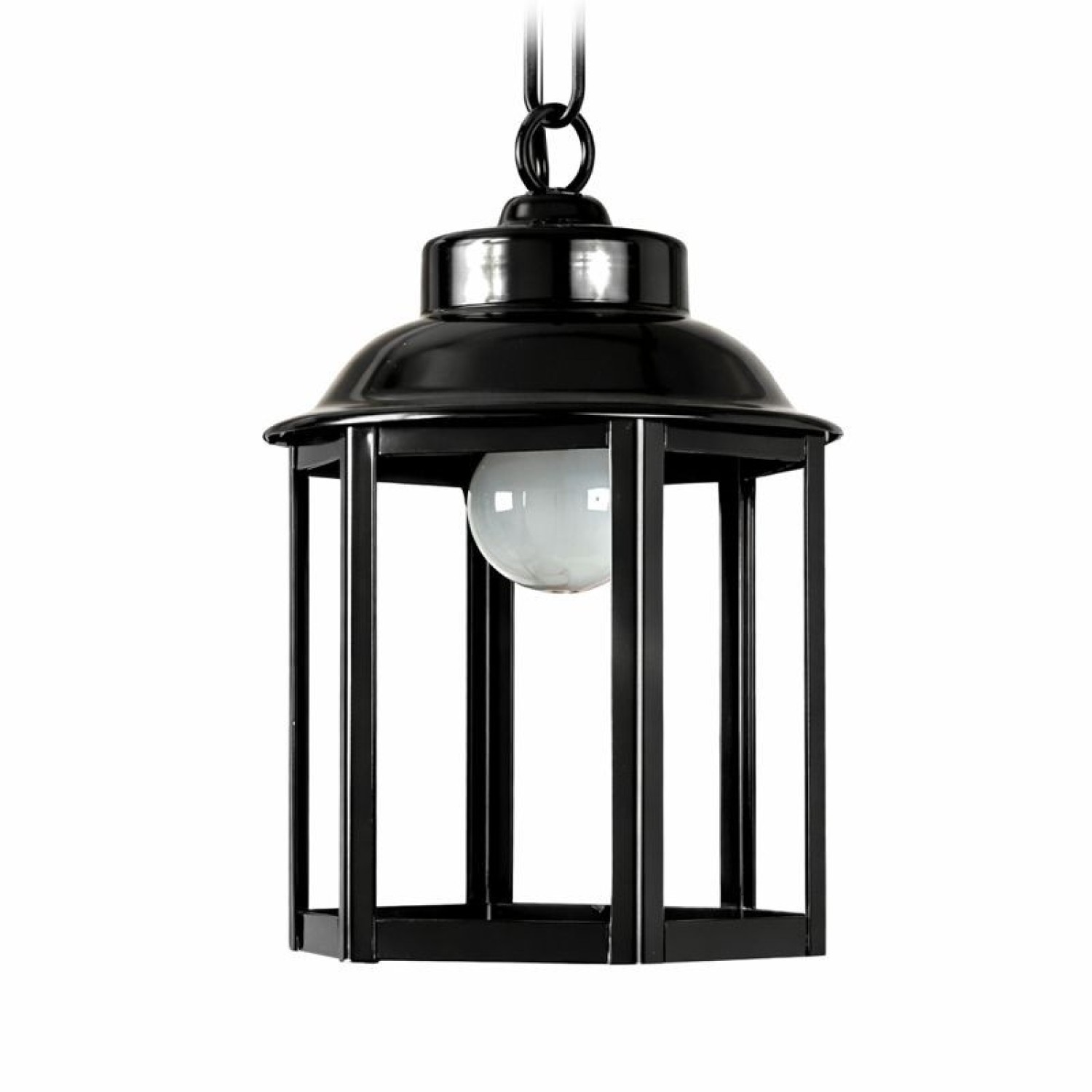 Hexagonal recto, abierto abajo con cadena y florón. Cuerpo hierro