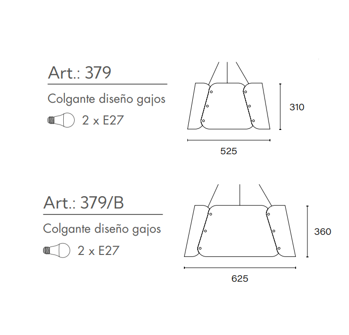 Colgante diseño gajos con 2 luces